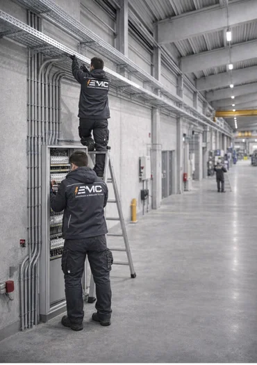 Als EMC Energie & Gebäudetechnik GmbH setzen wir industrielle und gewerbliche Elektroinstallationen präzise und normgerecht um. Wir unterstützen Unternehmen bei der Umsetzung leistungsfähiger elektrischer Infrastrukturen – von der Planung bis zur fachgerechten Installation.